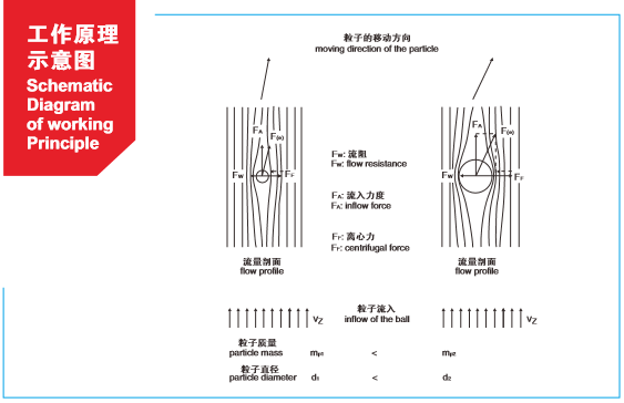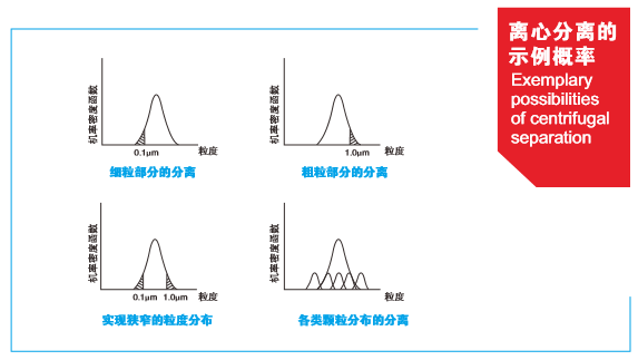 “分級”指的是將懸浮在液體中的粒子譜機械分級成兩部分,該分離以物理效應為基礎。 黏性使料漿粘附到轉子壁上,并且以相同速度進行旋轉。離心力將液體和懸浮固體分離開,重力加速度和離 心力作用下逐漸形成轉子壁面和拋物液面。 環形轉子蓋內的料漿隨著速度的增加而形成了液體柱,固體顆粒按雷諾茲數值分布懸浮在液體(層流)中。 最終,粒子受到離心力與轉鼓壁斜向的總力,隨著體積的增加,力偏轉角α減小,只有最細的粒子隨液體流 動至分級轉子的頂部,由出液管拋出,而其他的都沉積于分級轉子壁上,經分散刮卸流出。