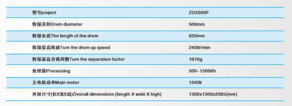 ZD2000F分級系統的工作流程分為兩個步驟 第一步分級,離心機轉子旋轉過程中,懸浮液連續不斷地輸送到系統中,同時粗渣和凝聚物收集在分級腔中, 懸浮液通過單獨的分級環室,從分級腔頂部邊緣送出,出口位置高于轉子頂部,成為可立即使用的清液。 第二步分散,當分級腔內填滿超過60%容積的粗渣時,轉子速度將會降低到預先設定的分散速度。啟動分散裝 置時,少量的稀釋液會不斷地打進分級腔內。分散流程持續以減速進行,在所有的環室清潔后,排除的粗渣用泵抽 走。在再次啟動之前,分級腔將短暫停止運行,以使得滯留液體可完全流出系統。 精確的分級系統,使得只有小部分(粗大粒子)需要刮削處理。這對于需要處理的物料而言,是極少量的,因此 減少了污染的過程,能夠大大提高效益。